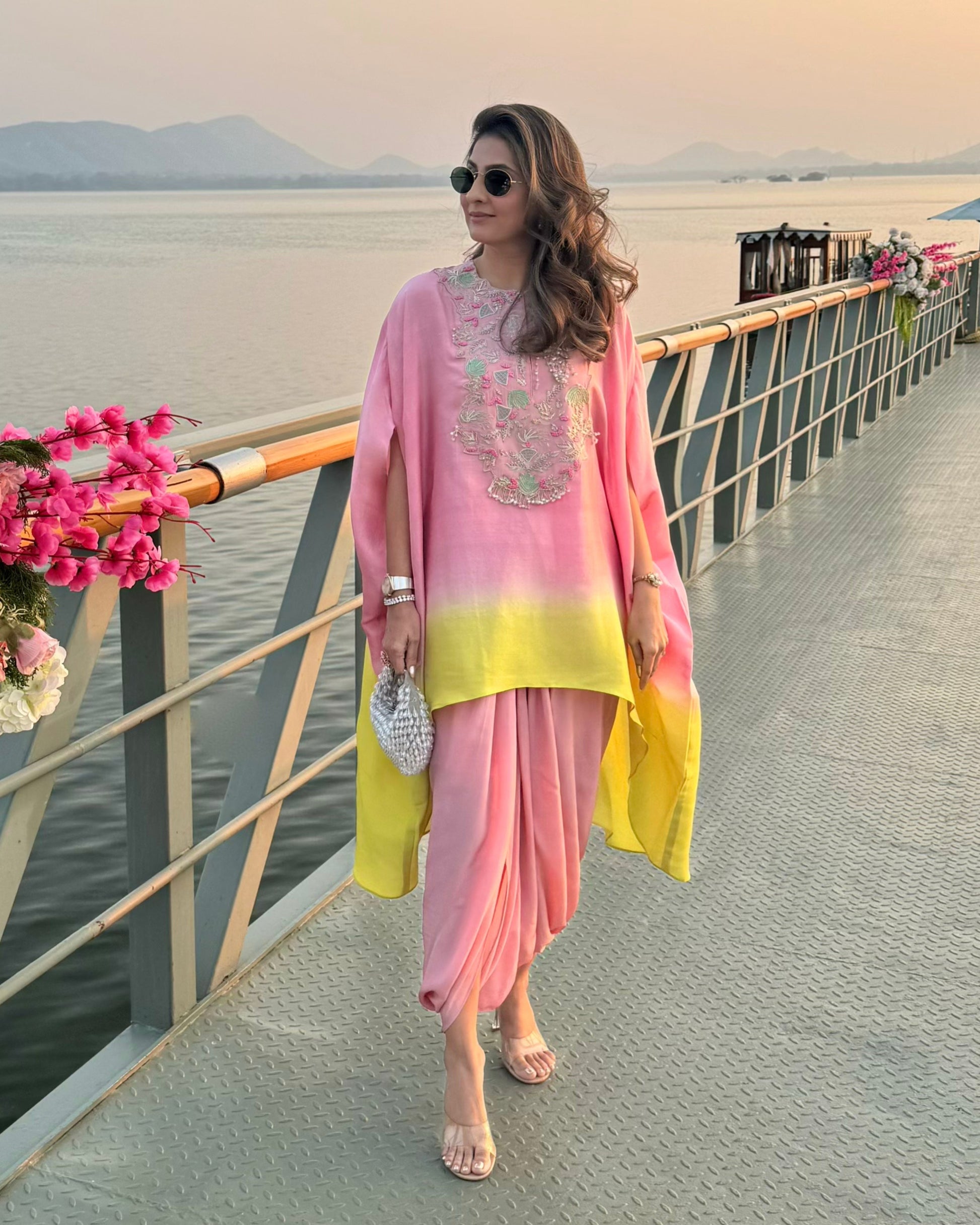 • Silhouette: Easy, relaxed-fit top paired with a fluid, draped dhoti for a graceful, contemporary traditional look